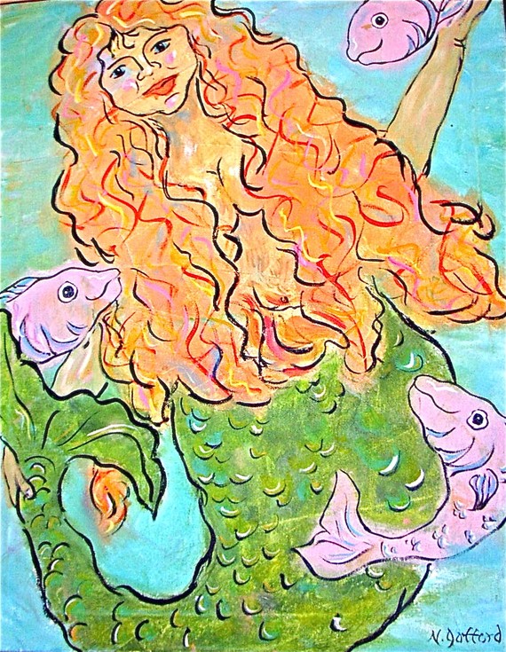 For those of you out there that love the allure of mermaids and like to make purchases that support hand-made, indie artists, I am sharing these lovely mermaid inspired art pieces from my fellow artists at Boardwalk Artisans.