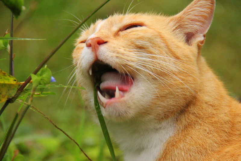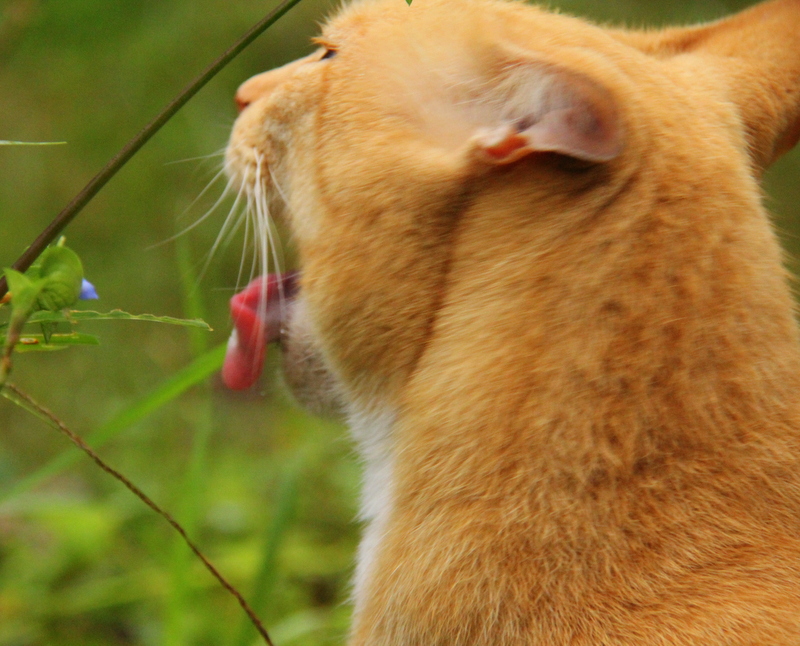 Watching the ferocious attack by That Cat to a blade of grass.