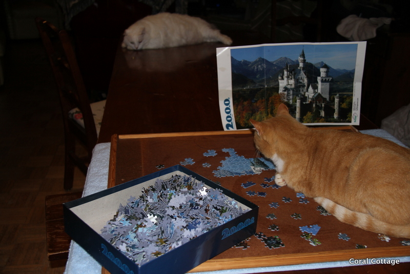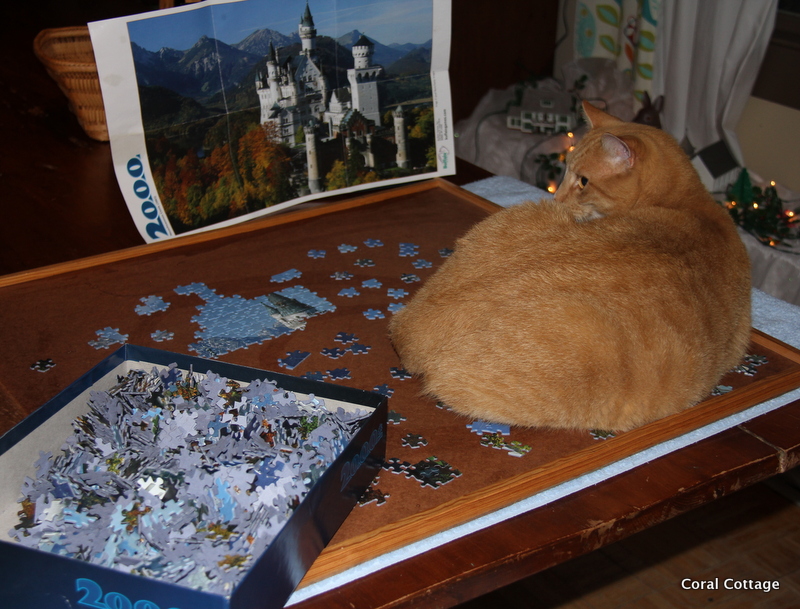 1. Sounds like you have a stash of fabulous puzzles. I haven’t made any progress with mine at all. I have to keep moving the board it is on from place to place, so it isn’t in the way, or a cat isn’t sleeping on it…
