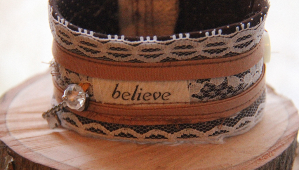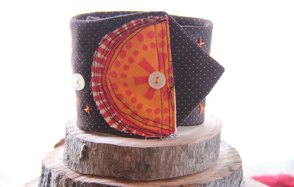 My creative process is quite messy – I love getting my boxes of crafty-stuff out and spreading all the bits and pieces out over any available surface, trying to pick what suits whatever idea is running around in my head. Then out come the scissors, the sewing machine, etc., and I’m off. I do um and ah a lot, and some things do take a long time to get used… but I think it’s all part of the journey. And I LOVE the journey. ;) Lovely cuff bracelets and post, Kim!