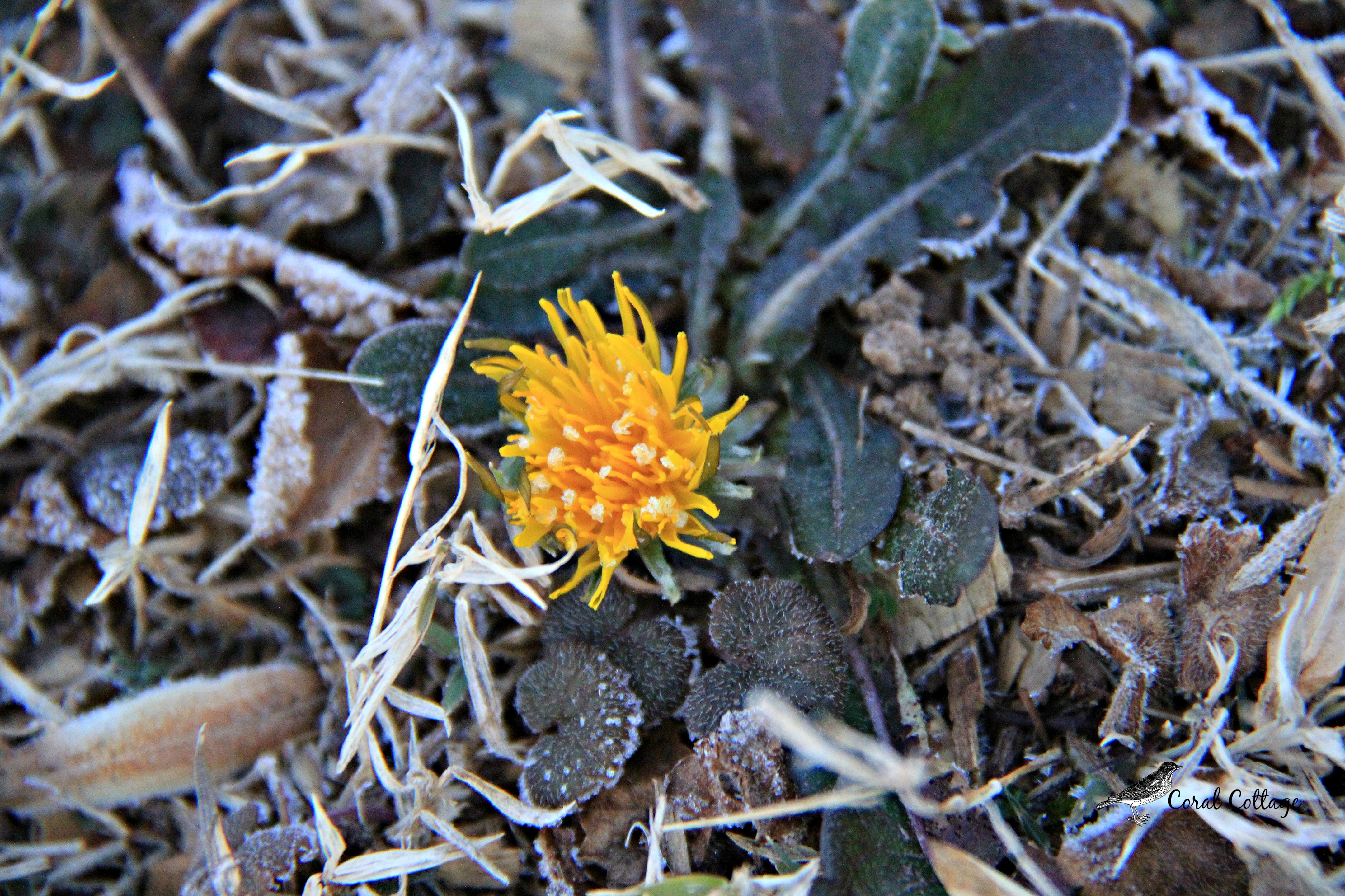 Nature surprises with a dandelion blooming mid winter.