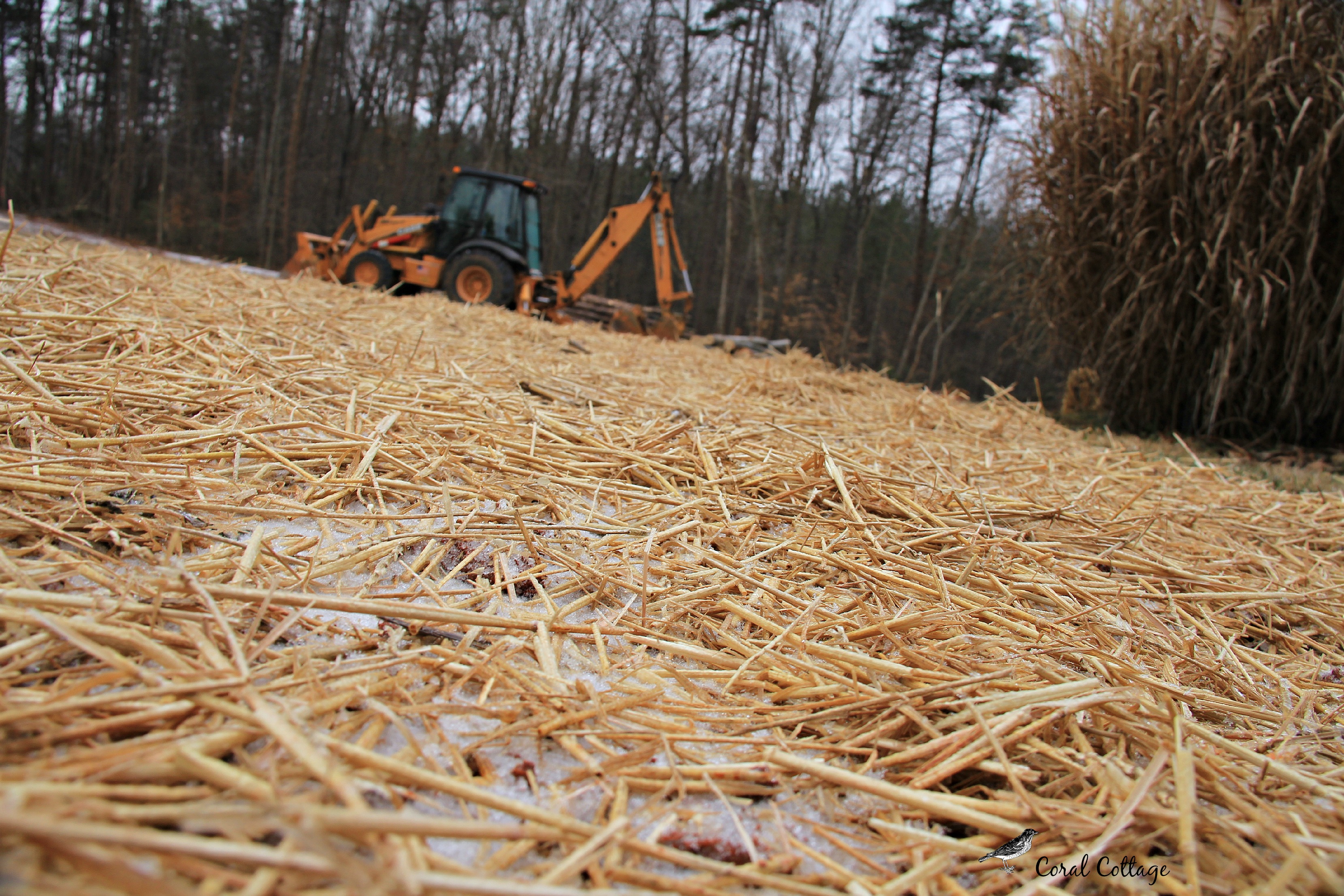 The cottage men spread straw closest to the house in an effort to cut down on mud being tracked in.