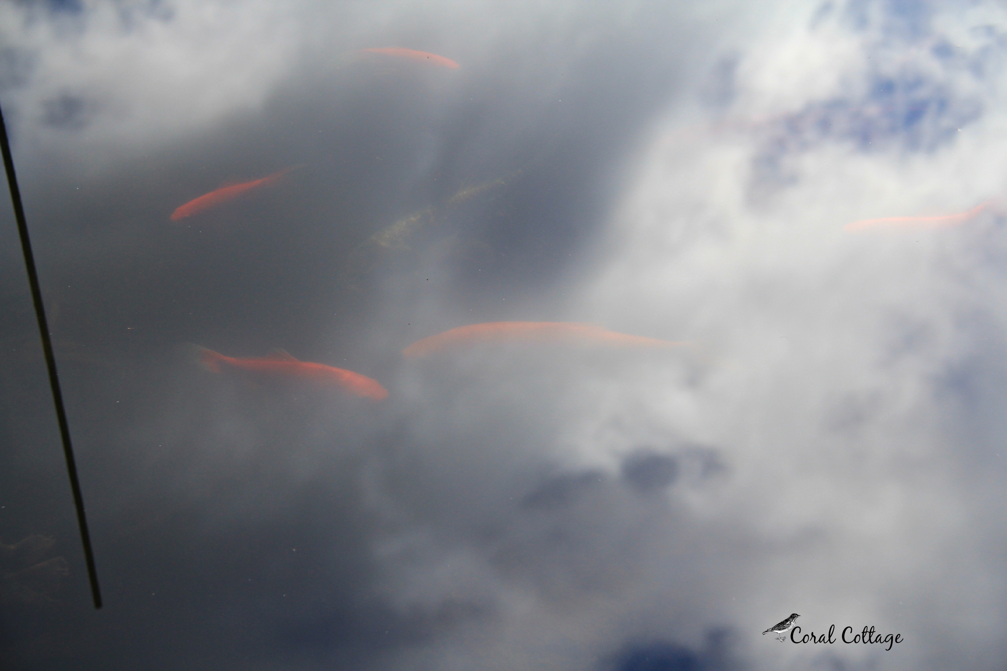 I wanted to take a photo of the fish huddled around the warm de-icer, so I could share it with you, but all the ice had melted. Mr. Cottage and I were just saying the other day that we are amazed how our smallest cats with their tiny little feet can stomp them so loudly. I just wonder, we laugh so much at our fur babies – are they laughing at their humans just as much?