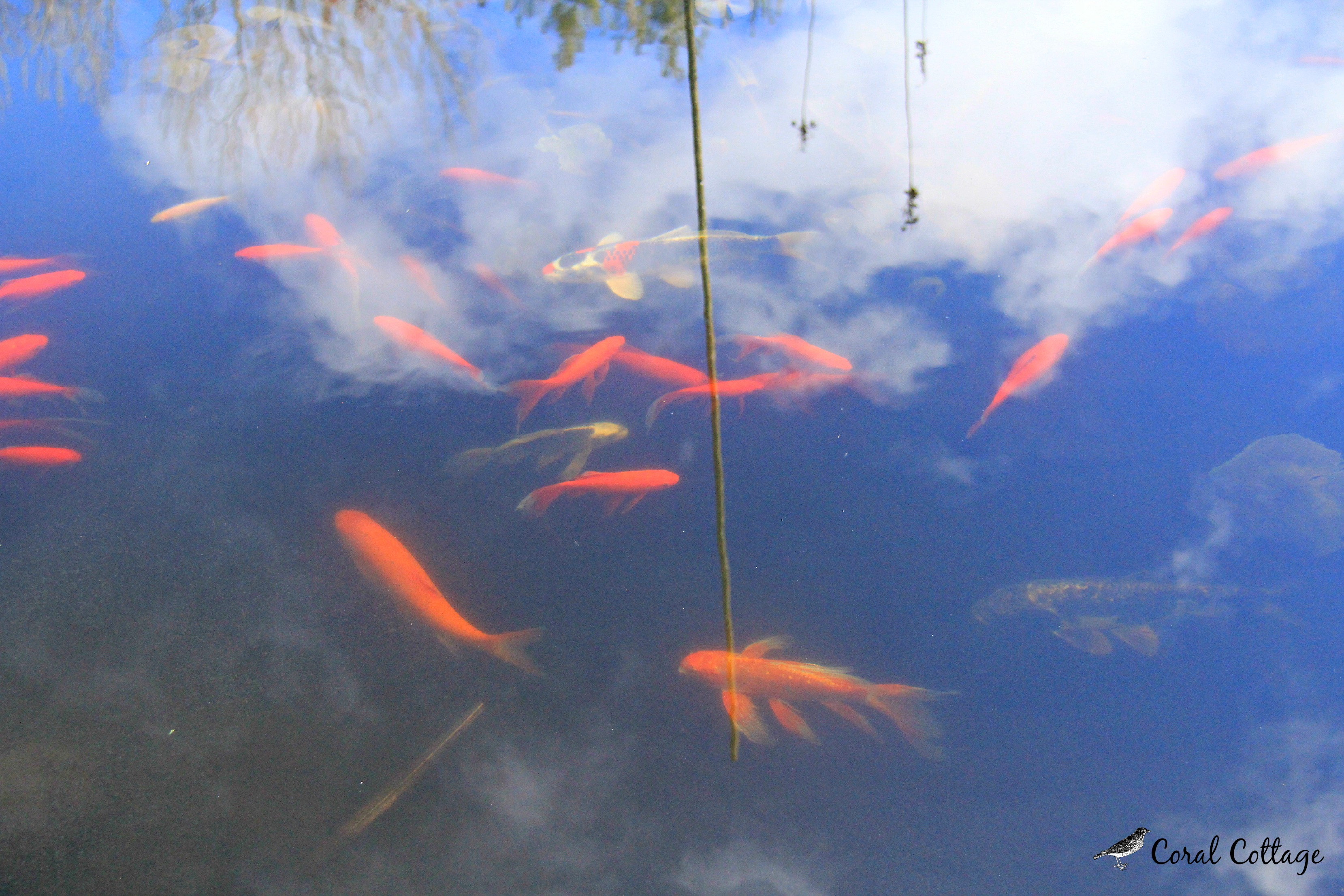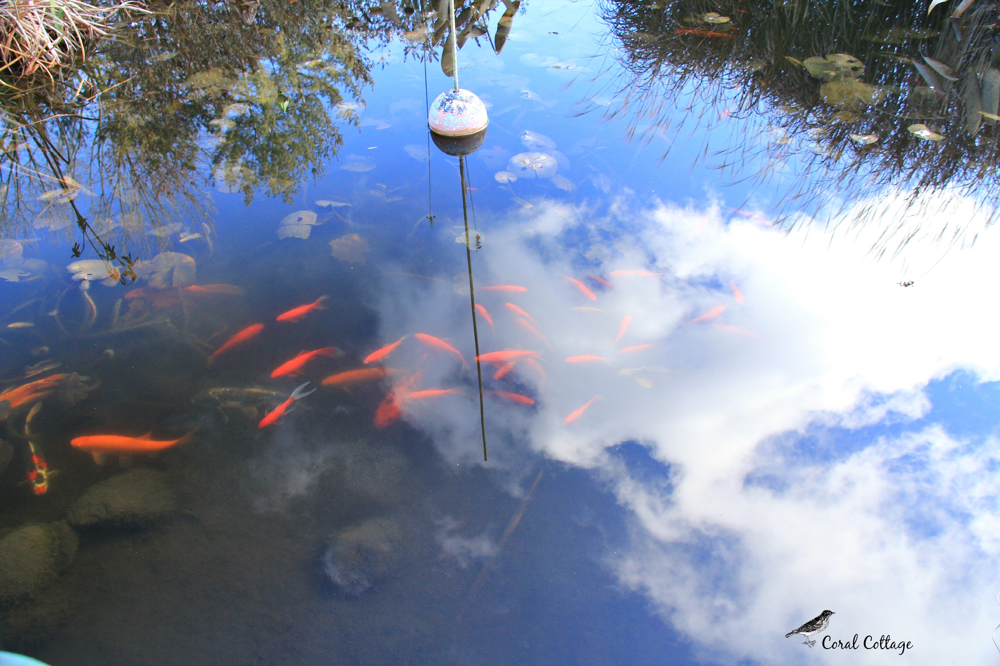 Ice on the koi pond melted yesterday under the warmth of the brilliant sun.