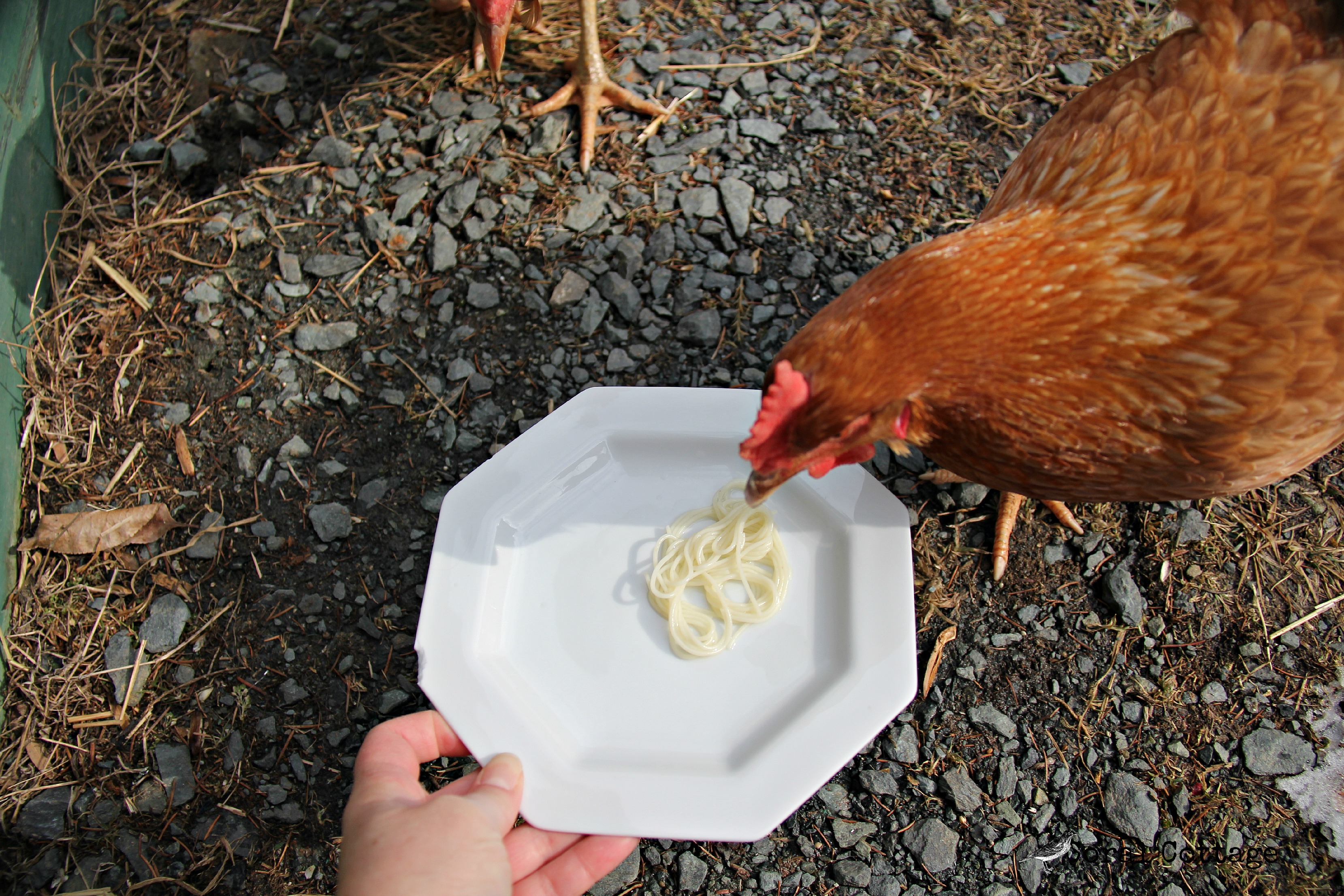 I’ve been reading about all the left-over kitchen scraps that chickens love to eat.