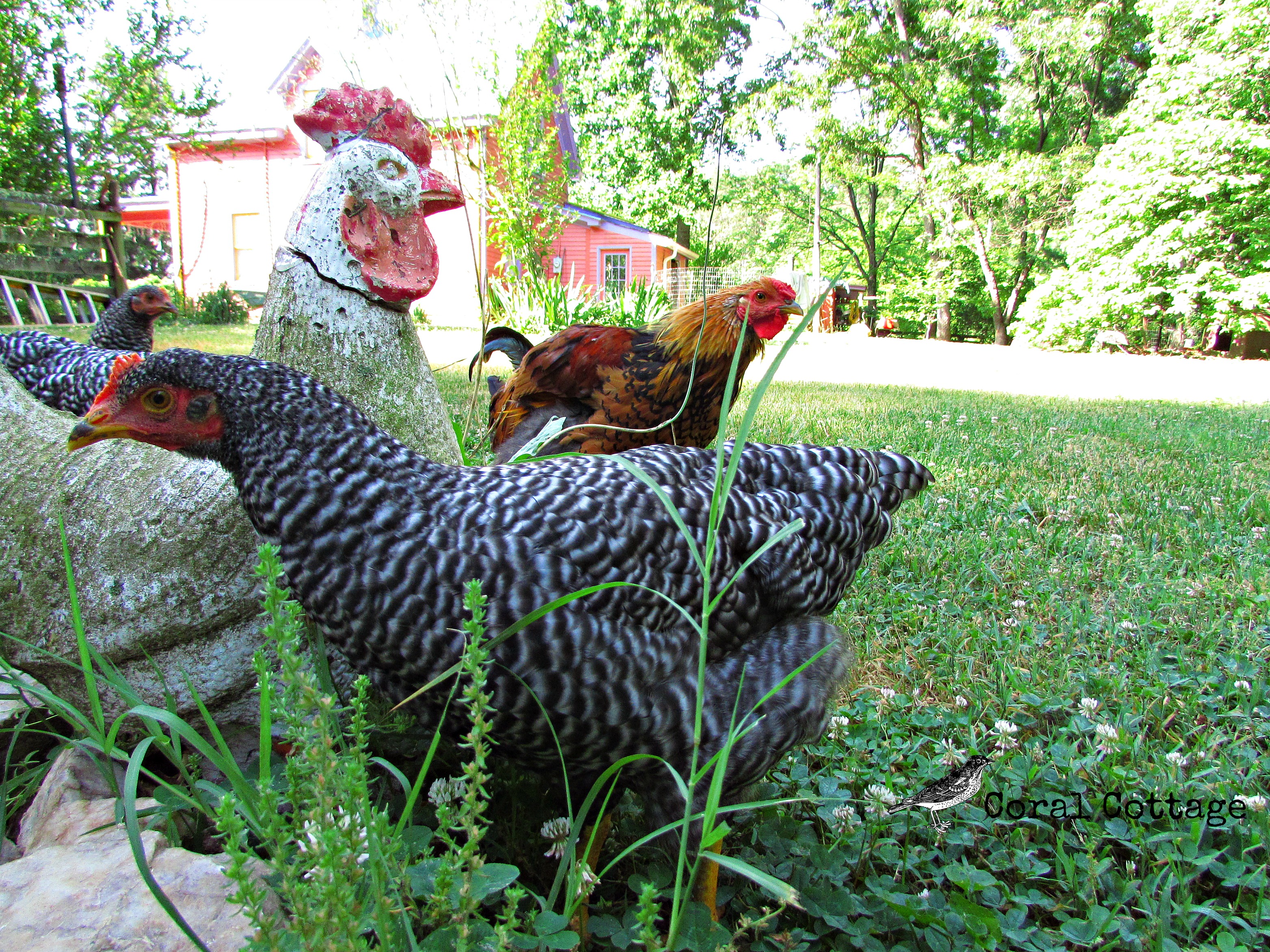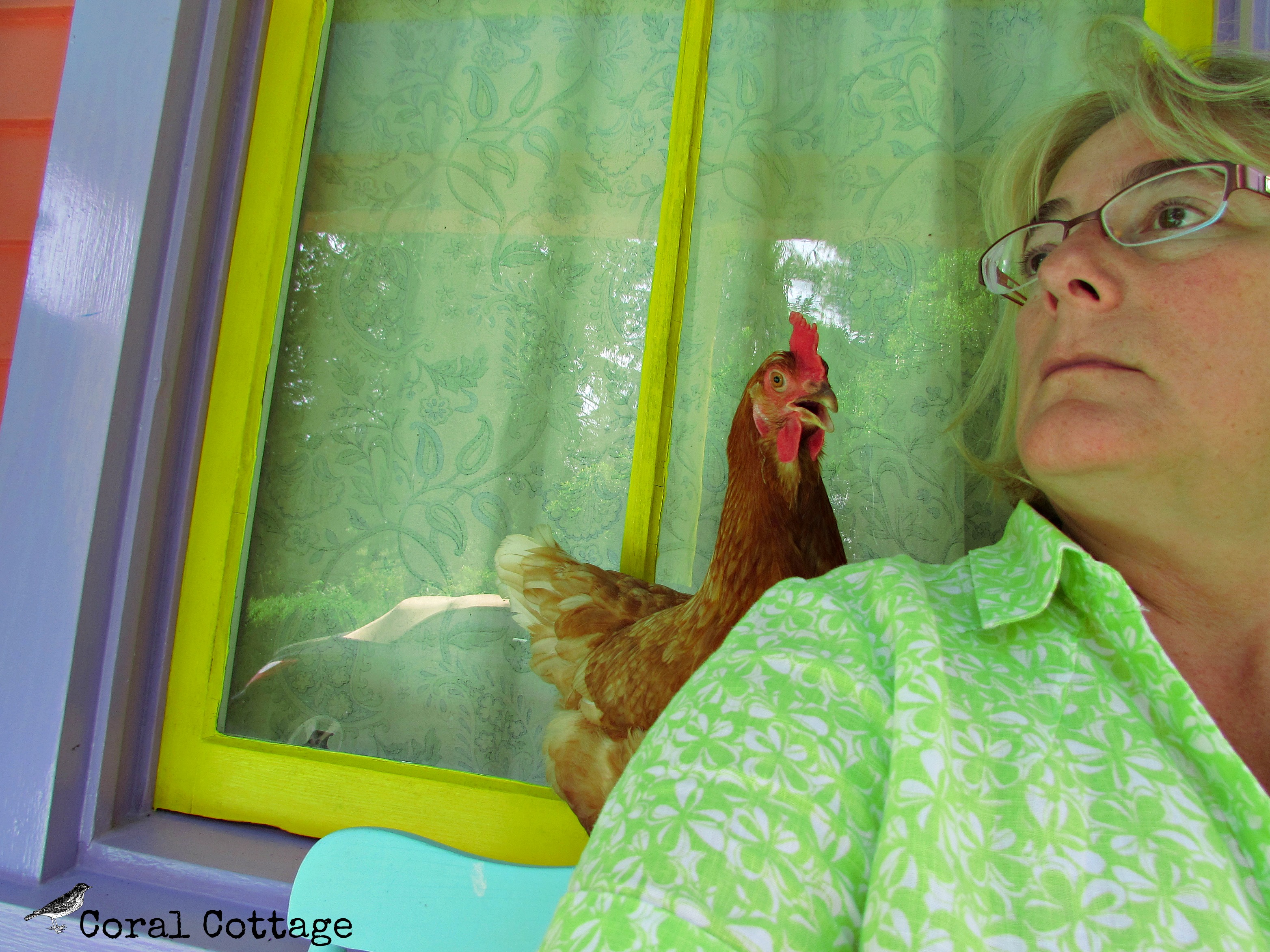 Kimmie – Very glad to hear you are healing well but feel for Mr. Cottage. I think you’ve got a typo in that very last sentence. Did the chicken get in your lap on her own? Are you sure Bella is a girl? Looks kinda roosterish to me. Did the home improvements come to a standstill?