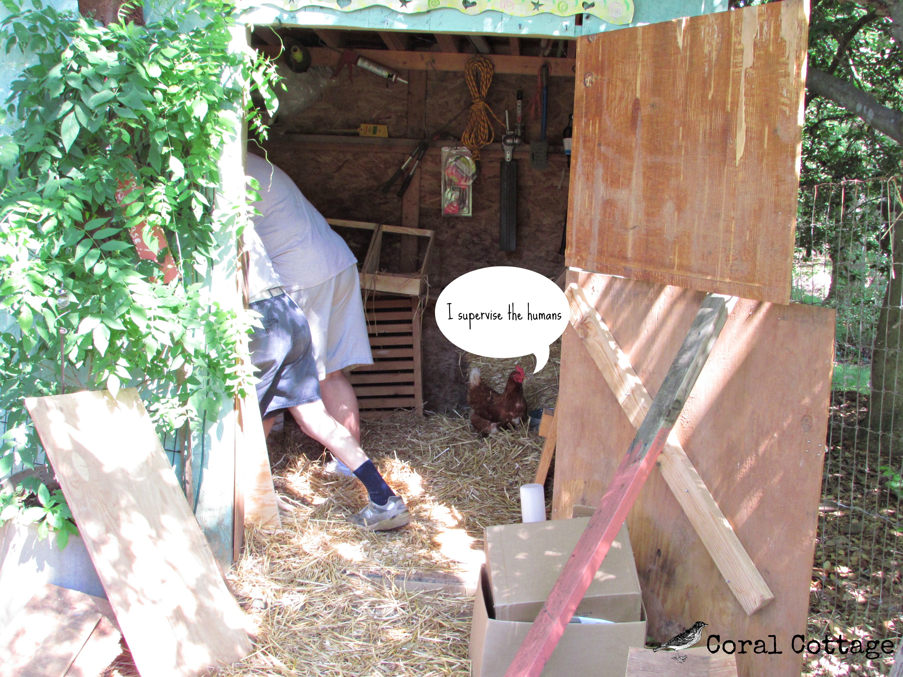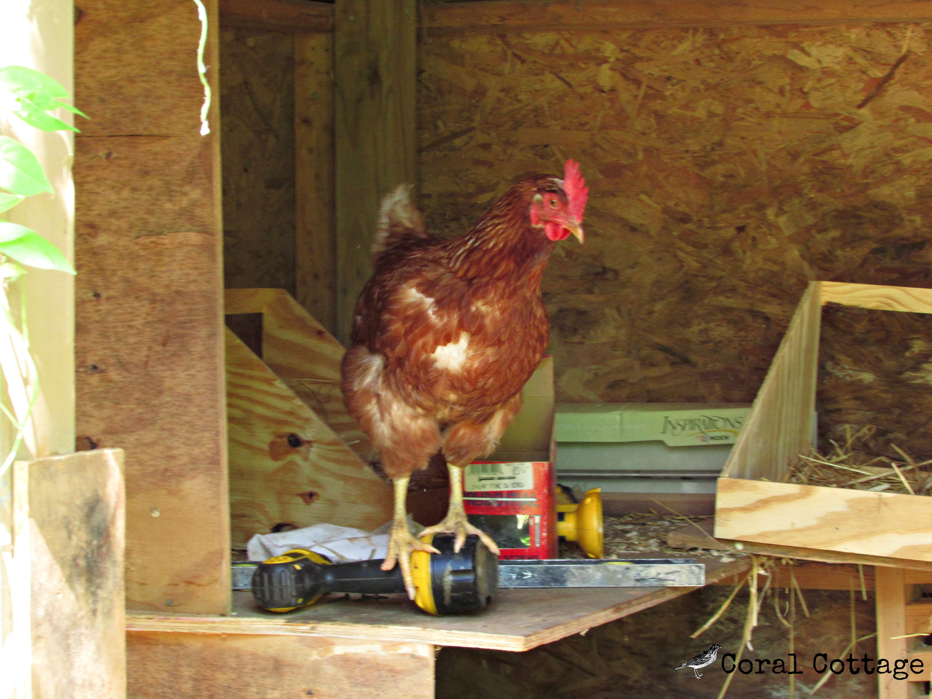 The Cottage men recently worked on rebuilding the inside of the coop making more nesting boxes and perches. The girls refuse to sleep on the perches and go straight to the nesting boxes and since the mean girls won’t share, space is important.