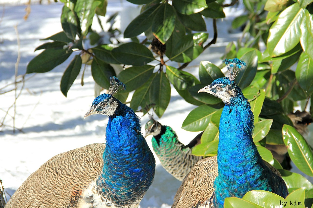 Miss Linda – I choose those names because they are non gender specific. I had read that it takes awhile to sex peafowl and being the impatient person I am I wanted to name them before I figured out their sexual orientation. Peafowl, to me are exotic and needed names that were not run of the mill joe and mary names. I wish I could send some of this snow to you. I’ll trade some snow for Zorro. xo kim