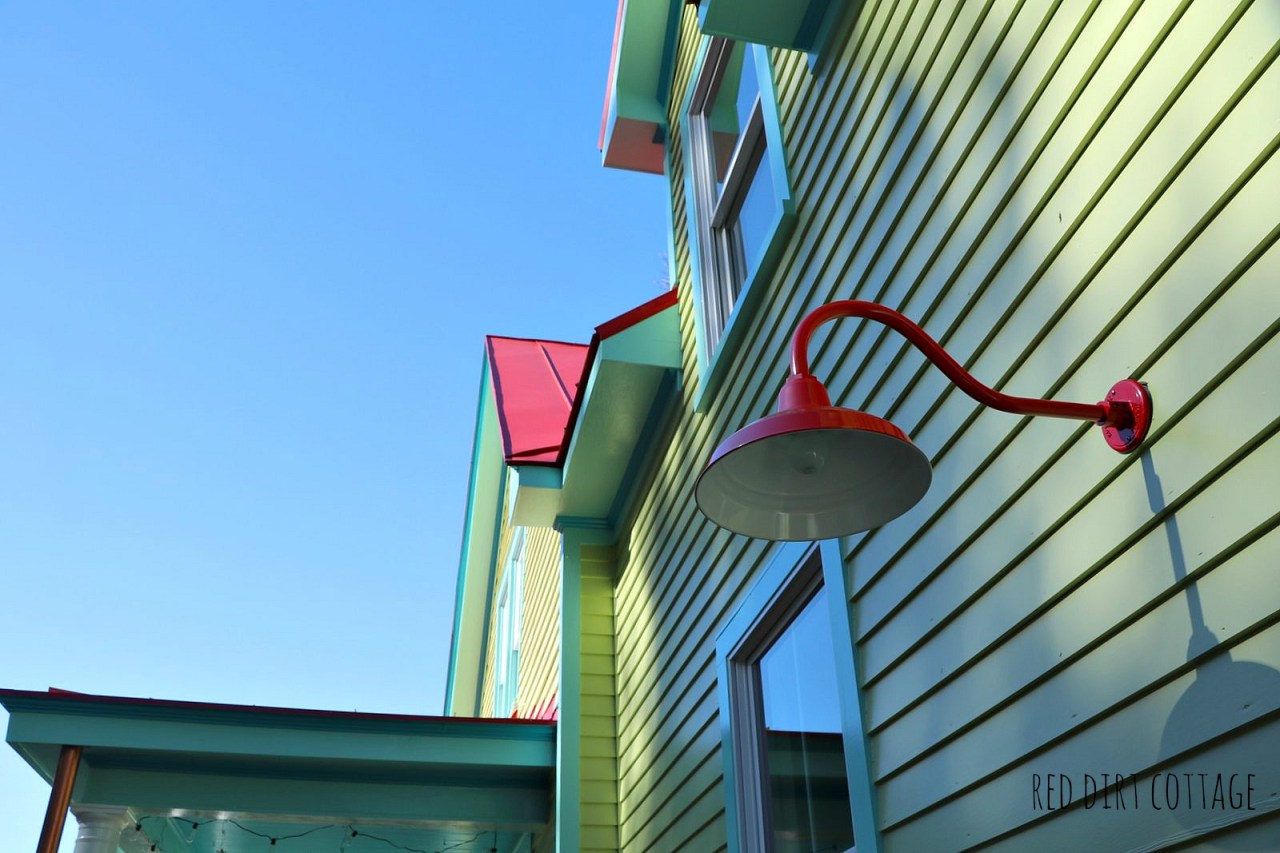 Heavens to Betsy, I love, LOVE, love, the new red lights! YOU DID GOOD! Nothing wrong with the scale of the light to the left of the glass door. You wouldn’t want those big honking lights over the cellar to be over the back door! Talk about out of scale! But the big honking lights are PERFECT for the front and over the cellar. Don’t LED lights last longer? If so, that’s what you should put in the light fixture over the cellar. Plus, they are more economical to run. Be watching for an email from me, ok?