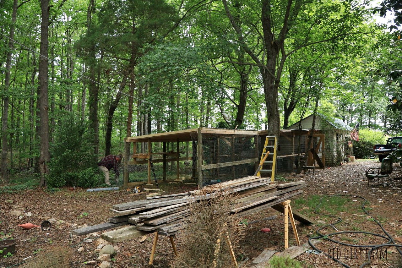 See that pile of lumber on the saw horses. It has been there for almost 2 years. Our plan was to use that old barn wood on the exterior of the peafowl house. We never got around to doing that, and now most of it is in such bad shape it can’t be used. We had to move all of that and re-stack it so that we could move the coop. The whole time we were moving it, I was thinking we should just be putting a match to it.