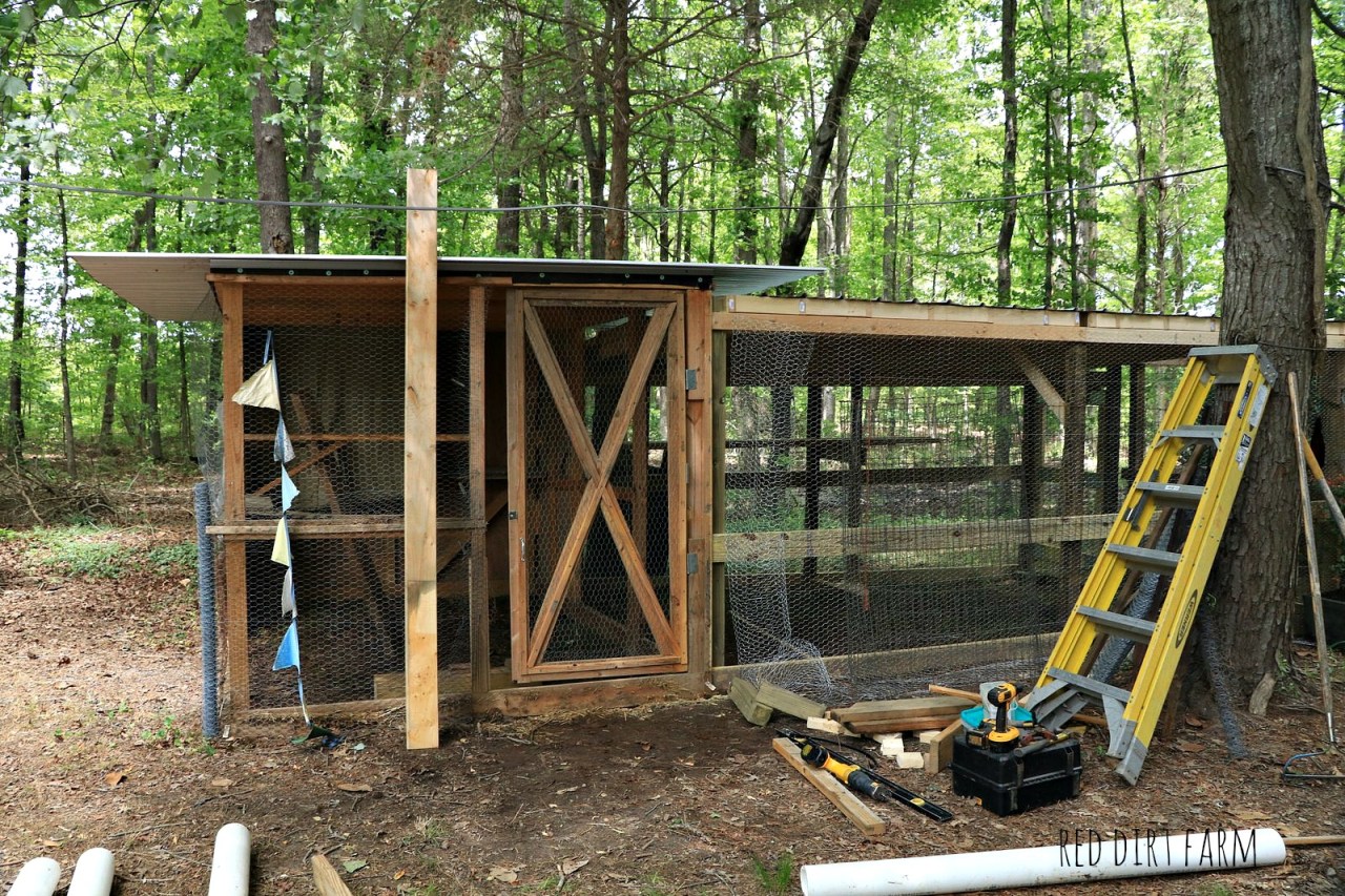 Then we got a few more and needed more space so we purchased one of those small premade coops and put it inside and existing dog fence frame, we added a roof and lots of secure fencing.