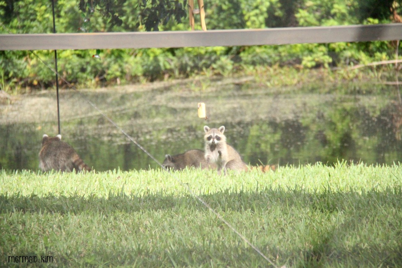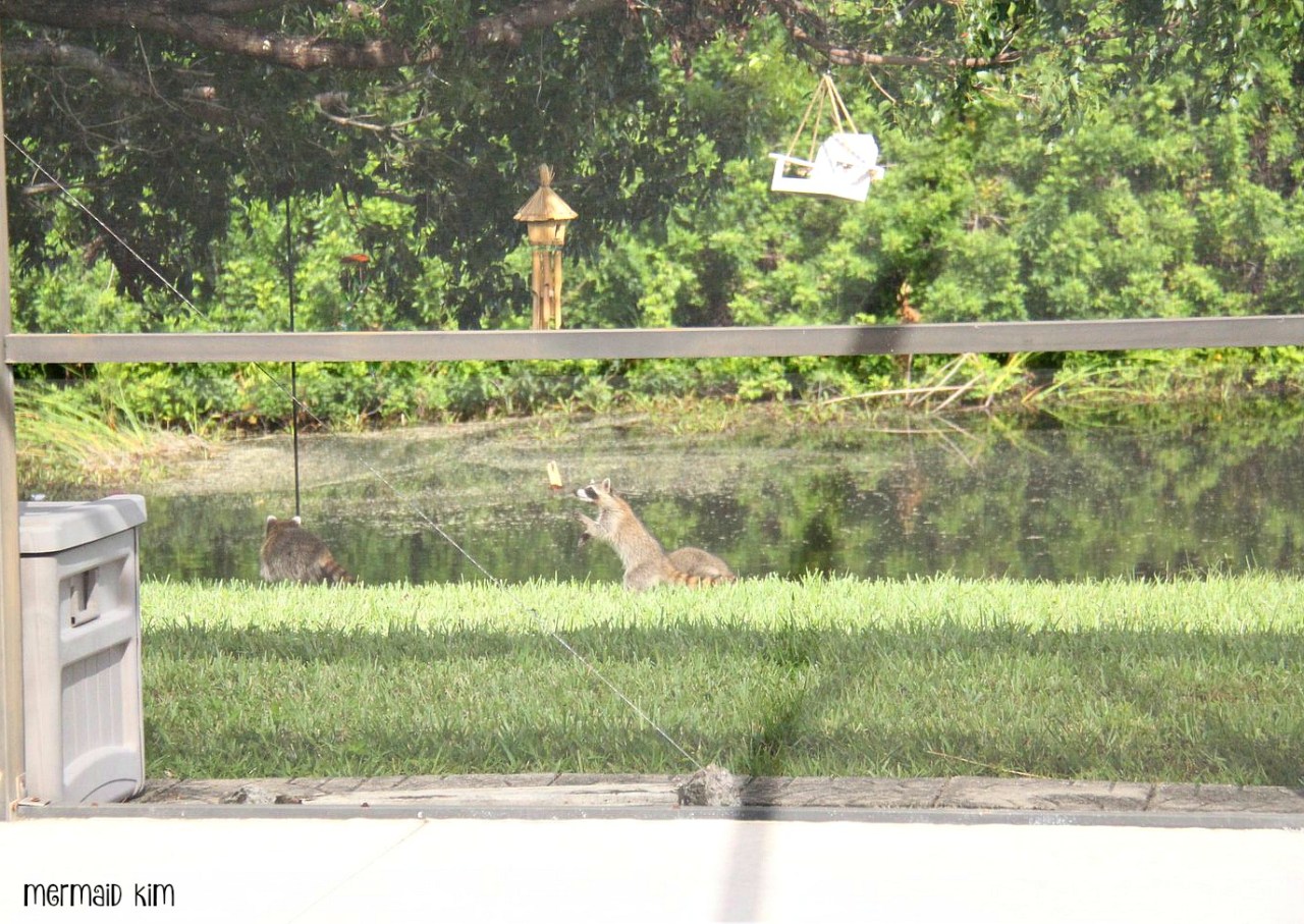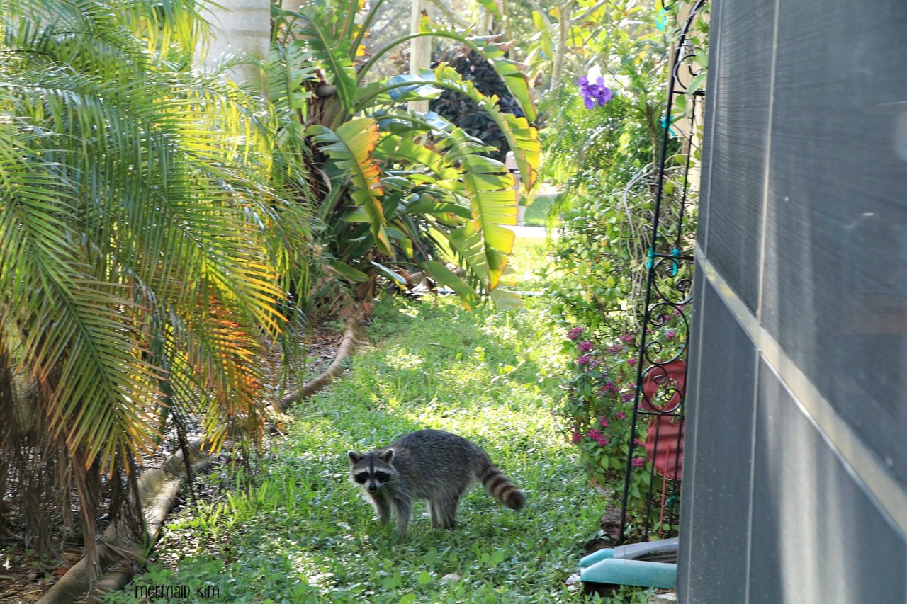 Like clockwork, between 3:00 – 4:00 every afternoon she makes her rounds. She will come to the Lanai cage and look inside to see what we are up to and to visit with That Cat. She stands on her hind legs and cups her front paws together leaning against the screen, peering inside. It is beyond cute. In recent years she had babies and they would tag along doing as momma did. At night the critter cam would capture their antics too. One particular visit I was awoken in the morning by a phone call telling me of my mom’s passing. I spent time that day losing my thoughts in as many was as I could, including watching Lulu feeding on the birdseed I put out. That day, Lulu arrived early and stayed for a long time, not keeping to her regular schedule. It was as if she knew I needed her to keep me distracted.