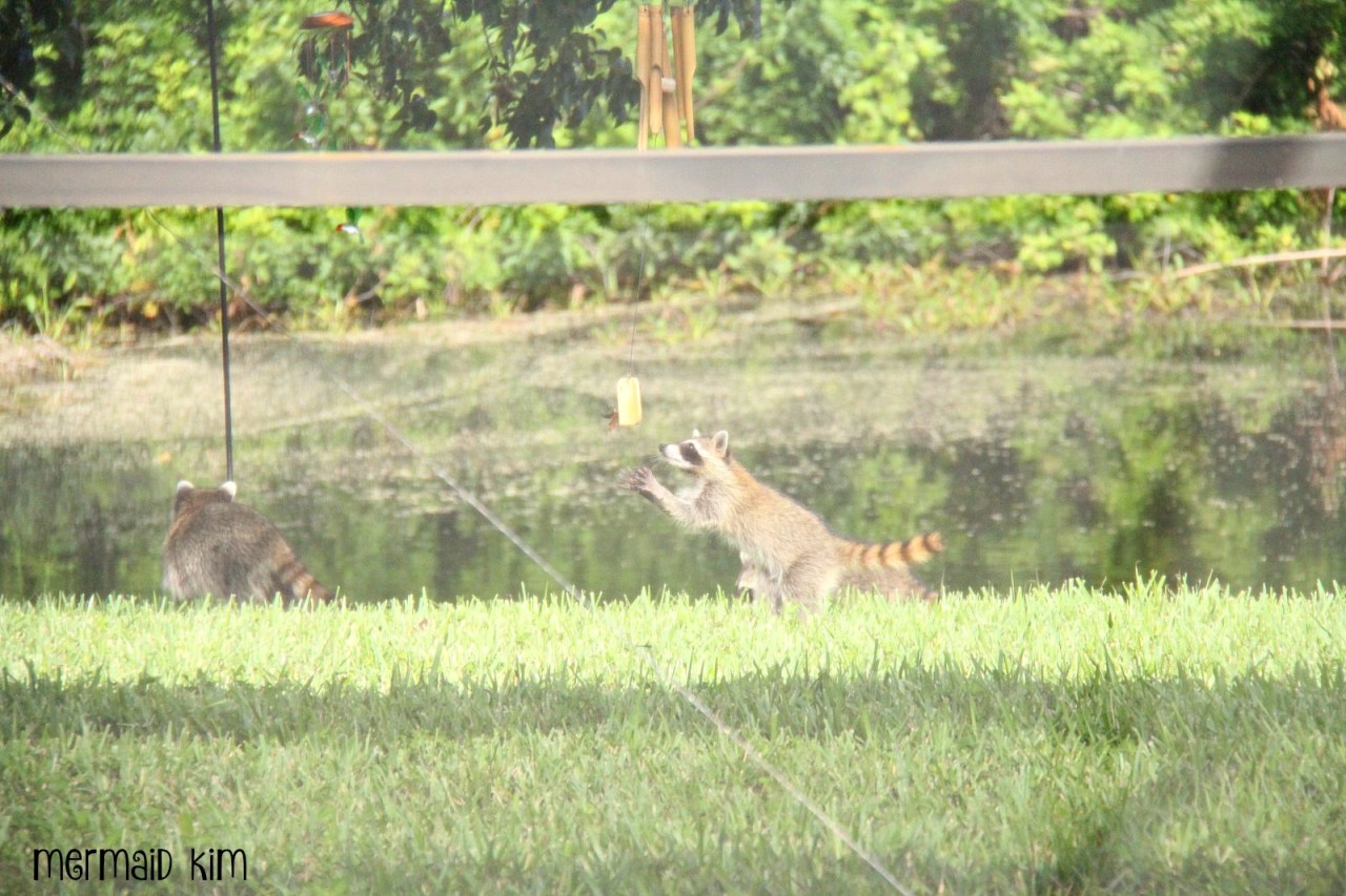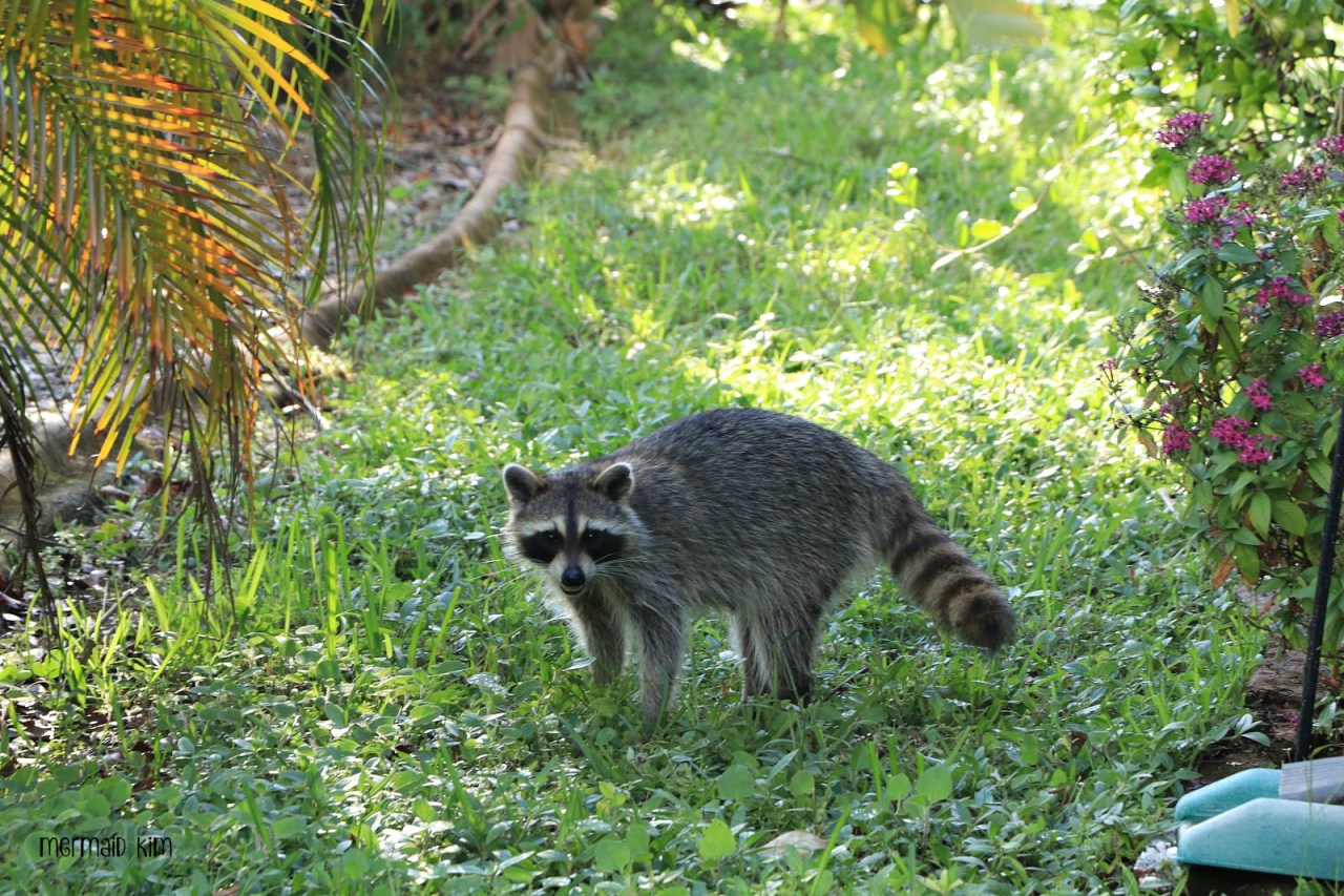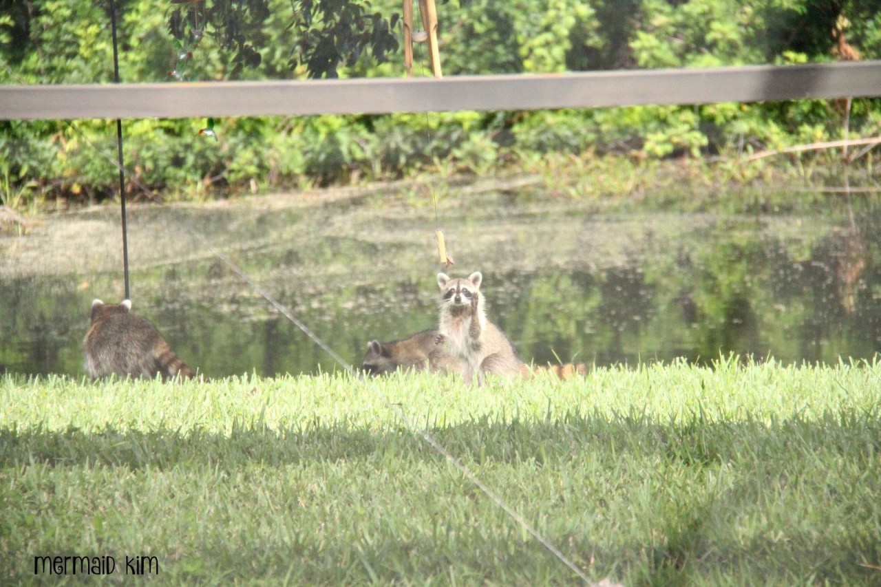 Like clockwork, between 3:00 – 4:00 every afternoon she makes her rounds. She will come to the Lanai cage and look inside to see what we are up to and to visit with That Cat. She stands on her hind legs and cups her front paws together leaning against the screen, peering inside. It is beyond cute. In recent years she had babies and they would tag along doing as momma did. At night the critter cam would capture their antics too. One particular visit I was awoken in the morning by a phone call telling me of my mom’s passing. I spent time that day losing my thoughts in as many was as I could, including watching Lulu feeding on the birdseed I put out. That day, Lulu arrived early and stayed for a long time, not keeping to her regular schedule. It was as if she knew I needed her to keep me distracted.