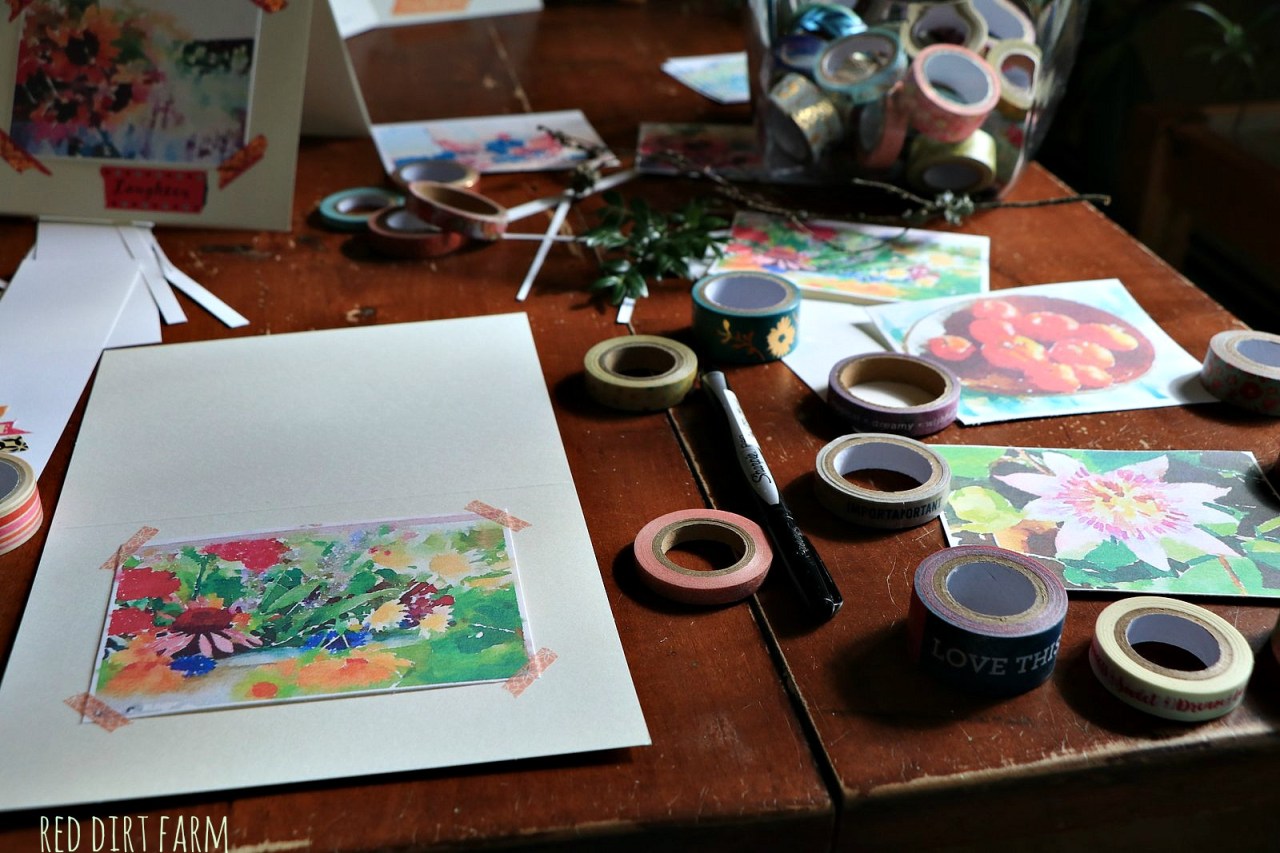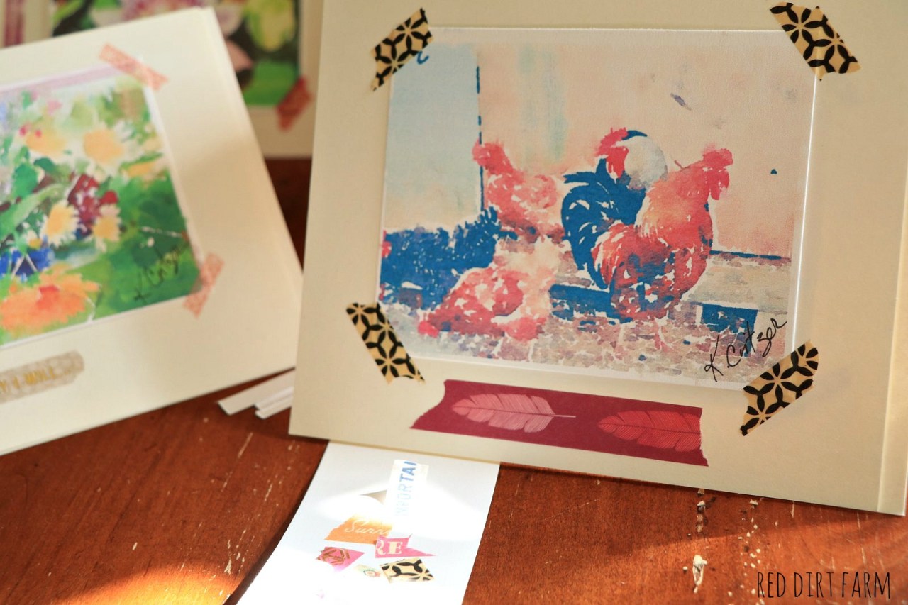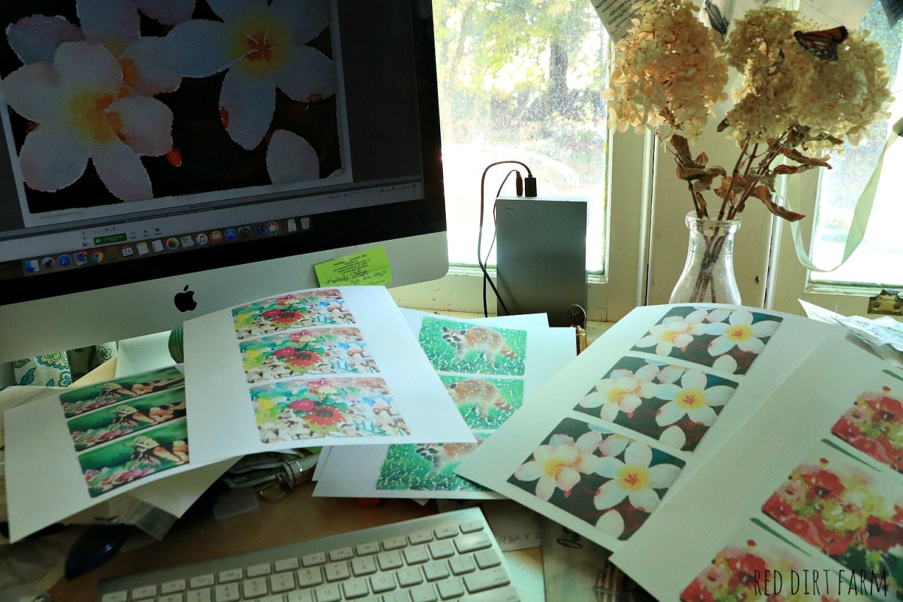 An early morning doctor’s appointment brought me into town on Monday, someplace I rarely go anymore. After my appointment, I treated myself to some creative time. First I spent an hour in the bookstore and purchased some inspirational magazines. While there I was pleased to see a spread in Haute Handbags Magazine of my friend Folk Artist Debra’s creative work. That was lovely to see. I then went over to the craft store where I lost myself strolling up and down the aisles looking at this, that, and everything in-between. I purchased materials to make cards with my images. I treated myself to a chicken sandwich and headed home full of inspiration.