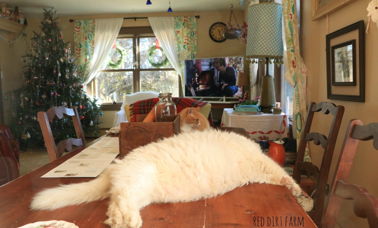 Lovely post-I was hoping to see a hen in the living room with the cats-like last year! I am so pleased to see evidence of your creative side-love seeing it spilled out on the table. You are having fun! I hope everyone is well…Merry Christmas to you all!