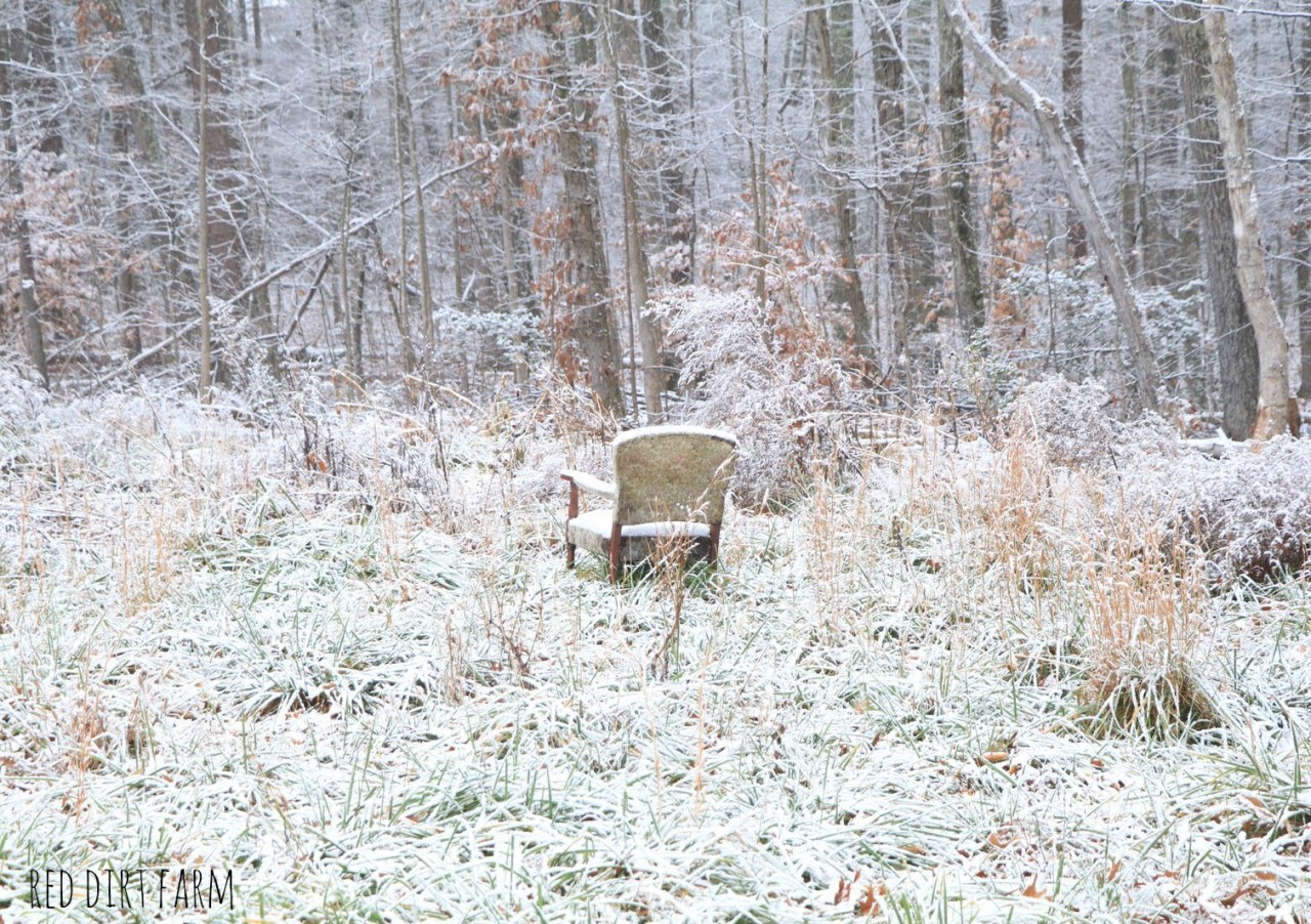 Merry Christmas, Kim… the solitary chair dusted with snow and the angel with one wing are images that linger… and I want to try the eggs-in-cream and the bourbon balls! Wishing you a peaceful, happy holiday with your family and blessings to your flock…they are so, so lucky to live on Red Dirt Farm…