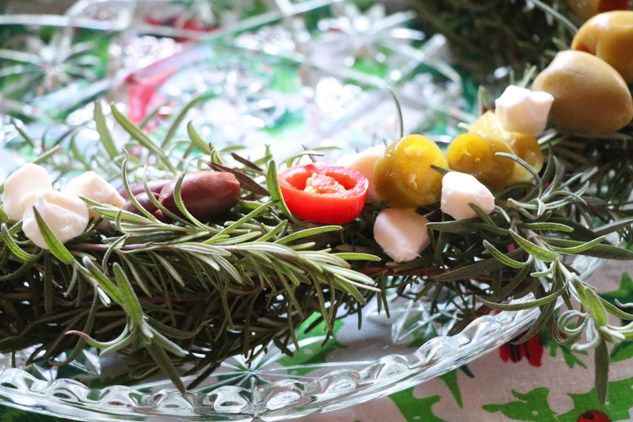 I made a wreath out of rosemary, fresh from our garden. It was garnished with an assortment of olives, peppers, and mozzarella balls. Mr. Cottage doesn’t like olives, so this was mostly a fun crafty thing for me to do. I made baked beans and stuffing with apples and pecans, nothing fancy, but it was a nice quiet meal with a glass of red wine for me and a shot of bourbon for him.