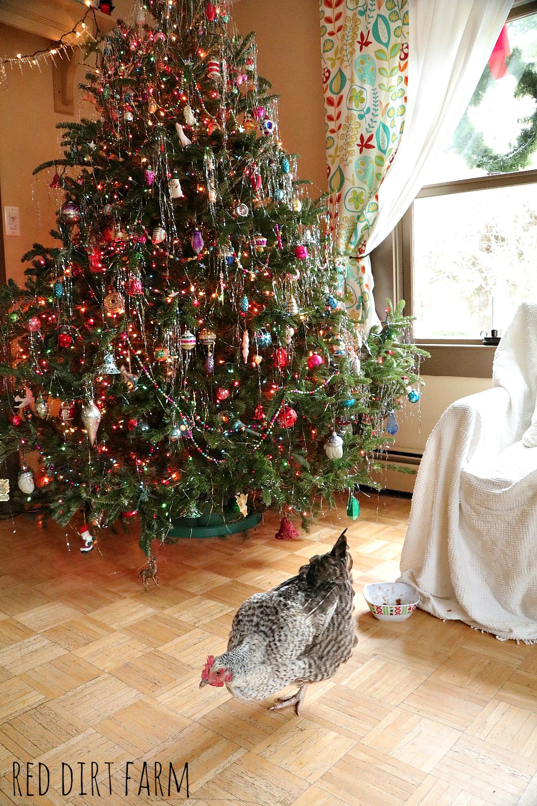 Your quiet Christmas speaks to my heart…I don’t think anything else is needed, just family and pets and good food and the warmth of Christmas lights. But I confess that I envy having a chicken strolling through the house and a peacock patrolling the front porch (and for that matter, the front porch itself : ) Happy New Year, Kim…it is the beginning of a new season… wishing good things for all the residents of Red Dirt Farm….