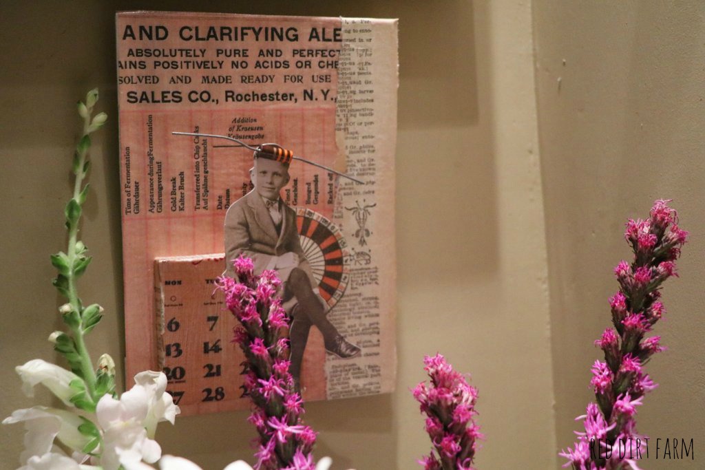 Other quiet pursuits including rummaging through the vintage button tin, finding just the right pieces to add to my mixed media collages. Hours of layering vintage advertising, music sheets, and pages from old dictionaries. There is a scent with all these old things, that makes me rather happy. I know kooky right?