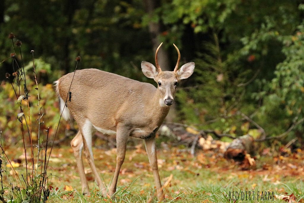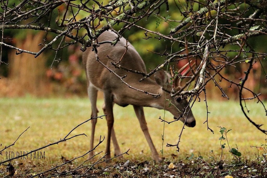 Hiding behind the zebra grass between the grape arbor, or standing under the pear tree eating to his stomachs content. Grazing among the sweet annie or chomping on the wildflowers.