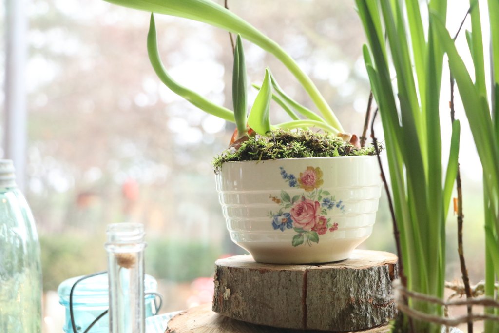 Happy Birthday! Your pictures are beautiful as usual! I have a set of dishes that my Grandparents gave me that are just like the bowl you have a plant in (the one kind of shaped like a beehive). Love those dishes and think of my grandparents every time I see them. So sorry a hawk got one of your girls. I feed the birds during the winter and have lost a few to hawks. It makes me so sad. I try to provide protection for them but it doesn’t always work. The weather here in Michigan has been crazy too. It has been a very mild winter with hardly any snow which is nice for people but not the fruit trees, etc. We have snow now and it is looking more like February in Michigan. Love your sign. I think it looks great!
