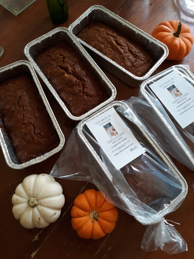 I baked pumpkin bread for the market yesterday, first a batch that didn’t turn out the best because I was distracted while I was putting the ingredients together. I had my head in the clouds, so I baked a second batch, which turned out just fine and it all sold at market. I took my little ornaments to the market too, they remained invisible because apparently pumpkin bread trumps everything!