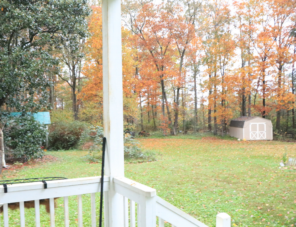 I have created a little den in the new addition we recently added to the house. It is here on this rainy day that I work on my blog. Among the remaining boxes and unplaced furniture, a bit of coziness is slowly coming about. Even though the rain is steady, the golden leaves are stunning and I have to step on the back porch and take a quick photo.