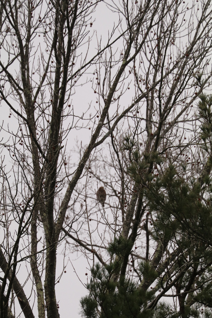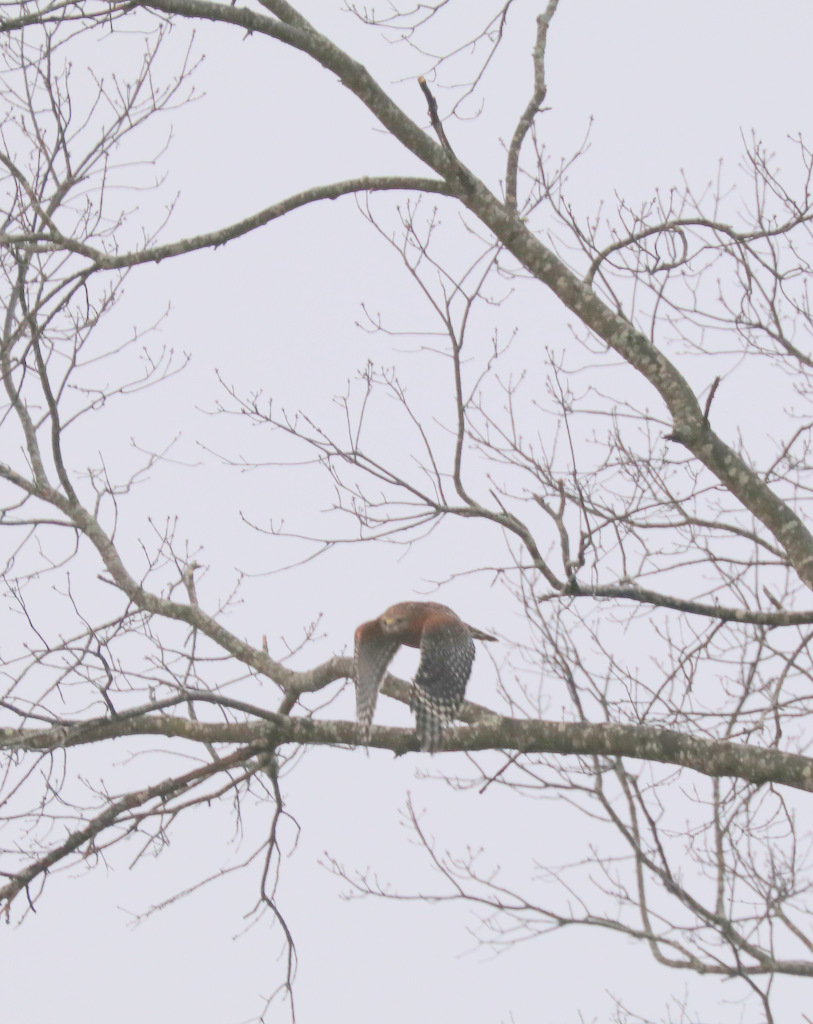 This hawk came two days in a row. It sat quietly up in the same tree. Surveying the kingdom below and making plans for what? Only he knows.