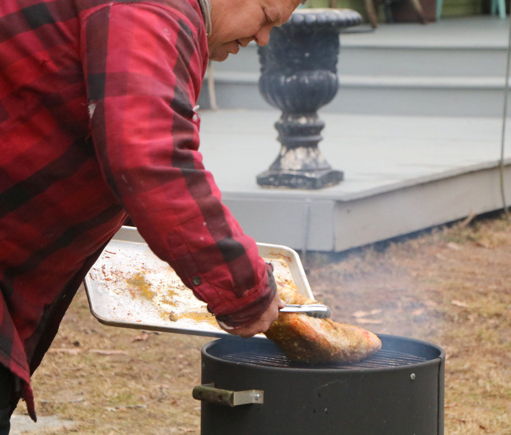 Mr. Red Dirt smoked a pork loin today. I made a dry rub and coated it with that. I have rotkohl simmering on the stove and baked beans in the oven. It will be a delicious feast.
