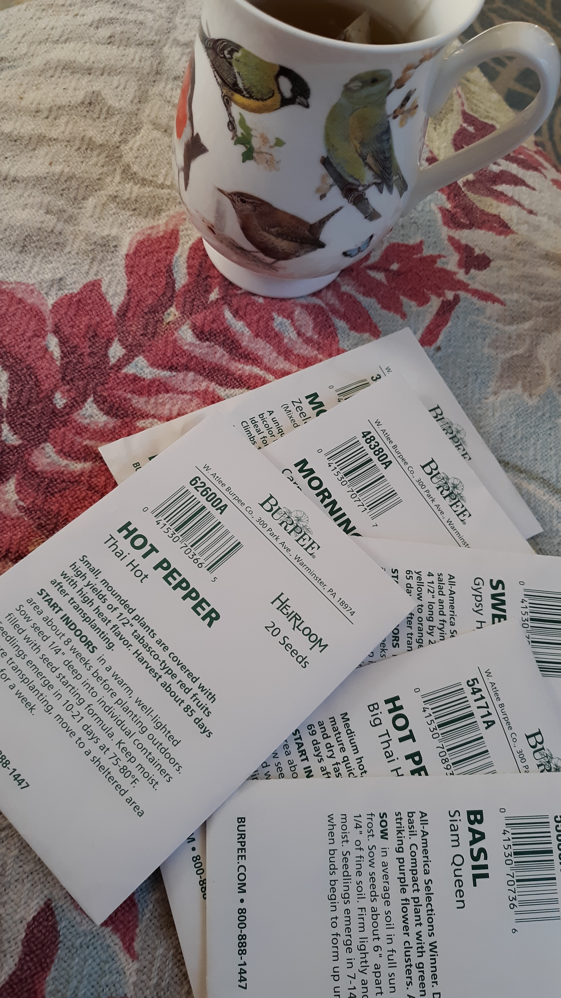 Are you dreaming of spring and warmer temperatures? I know I am. The first of some ordered seeds arrived this week. I think Burbpee has some of the most uninspiring seed packets, however, I trust their quality. My sister-in-law used to work for Burpee a very long time ago. I miss those days. She sent us so many wonderful seeds, plants, and yard decorations over the years. My favorite story about her working there was the time she shipped us grapevines. After a period of time, they had not arrived, and the search was on. The post office told her that they had been delivered. Another week went by and they finally arrived, with a note from the post office apologizing, saying that they had been delivered to the wrong address.