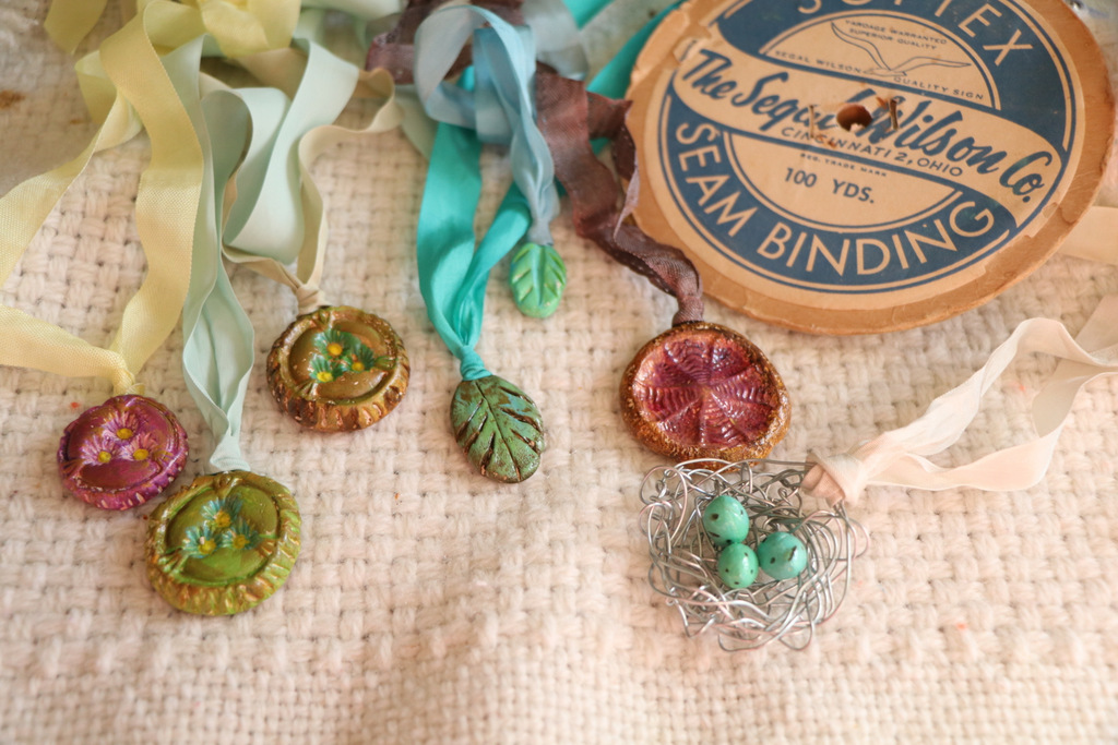 I am really enjoying working with clay at this time, learning and experimenting as I go. I have a collection of vintage ribbon that I have had for many years, it is like the icing on the cake for my eyes.