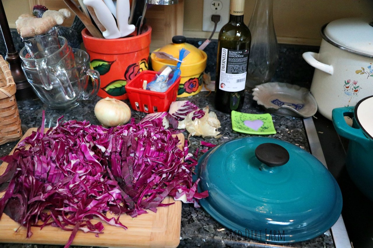 Then combine cornstarch with warm water and slowly stir into the pot and cook until cabbage thickens.